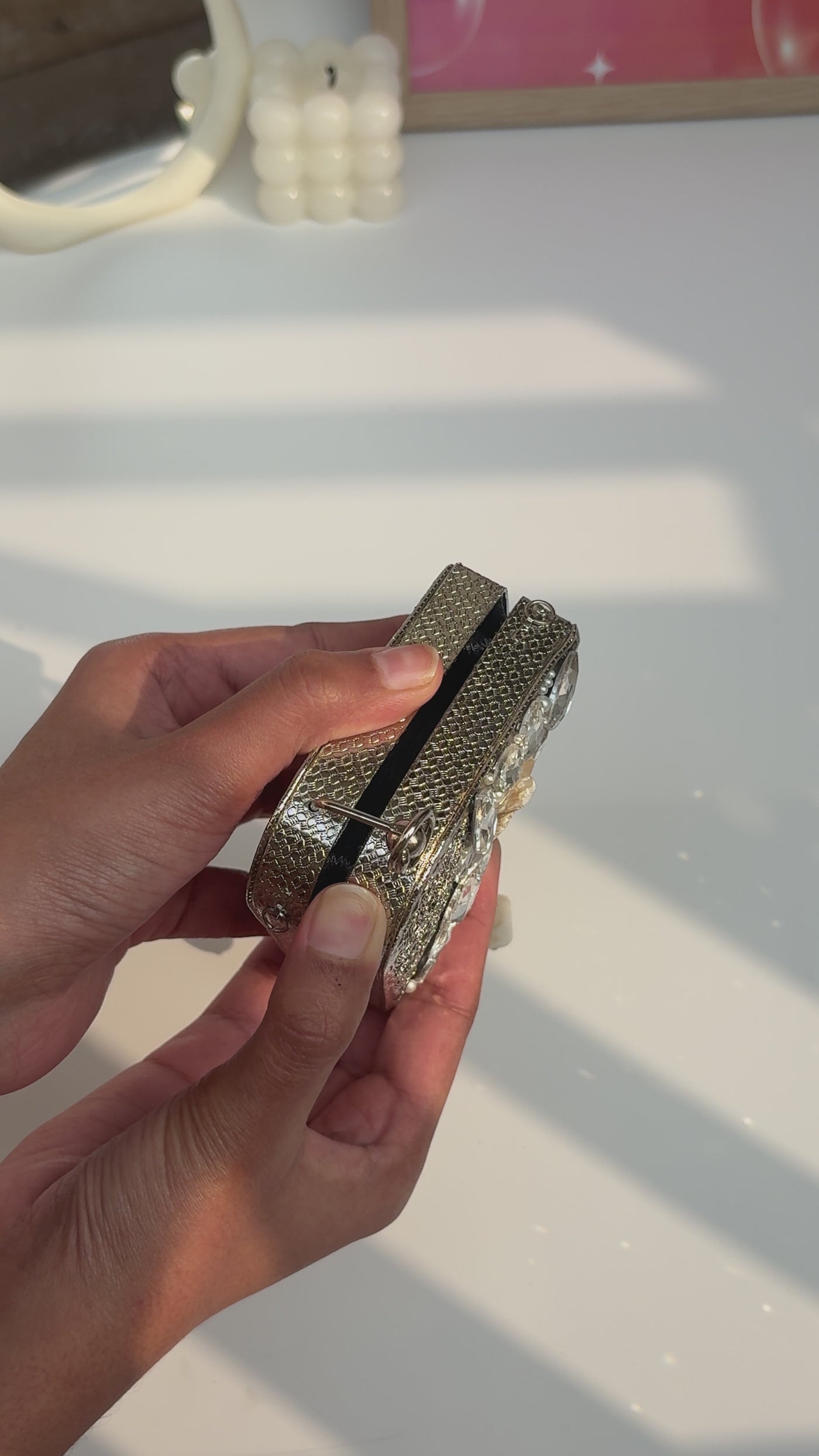 Placement and number/colour of stones and beads may differ depending on the availability.
